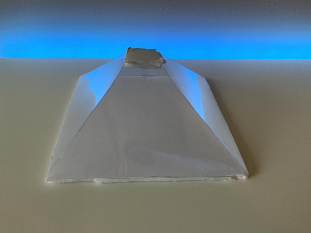 Step 3: Cut the foam board into a 4cm x 4cm square shape for the bottom of the prism and a 20cm x 20cm square shape for the top of the prism.